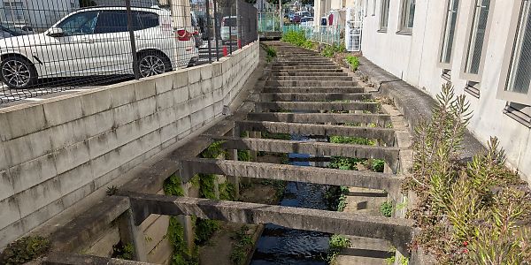 希望ヶ丘駅の北側には水路があります。蓋がされて水路の上を歩いて通れる部分と、水路がそのまま残っている部分があります。